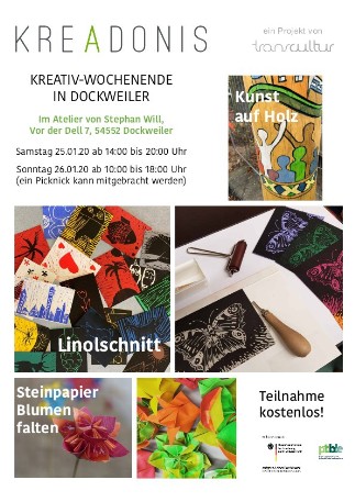 Mit Unterstützung professioneller Künstler*innen standen Linoldruckarbeiten, wetterfeste Blumen aus Steinpapier und Kreativ-Arbeiten mit/auf Holz samt Feuer im Freien auf dem Programm ...